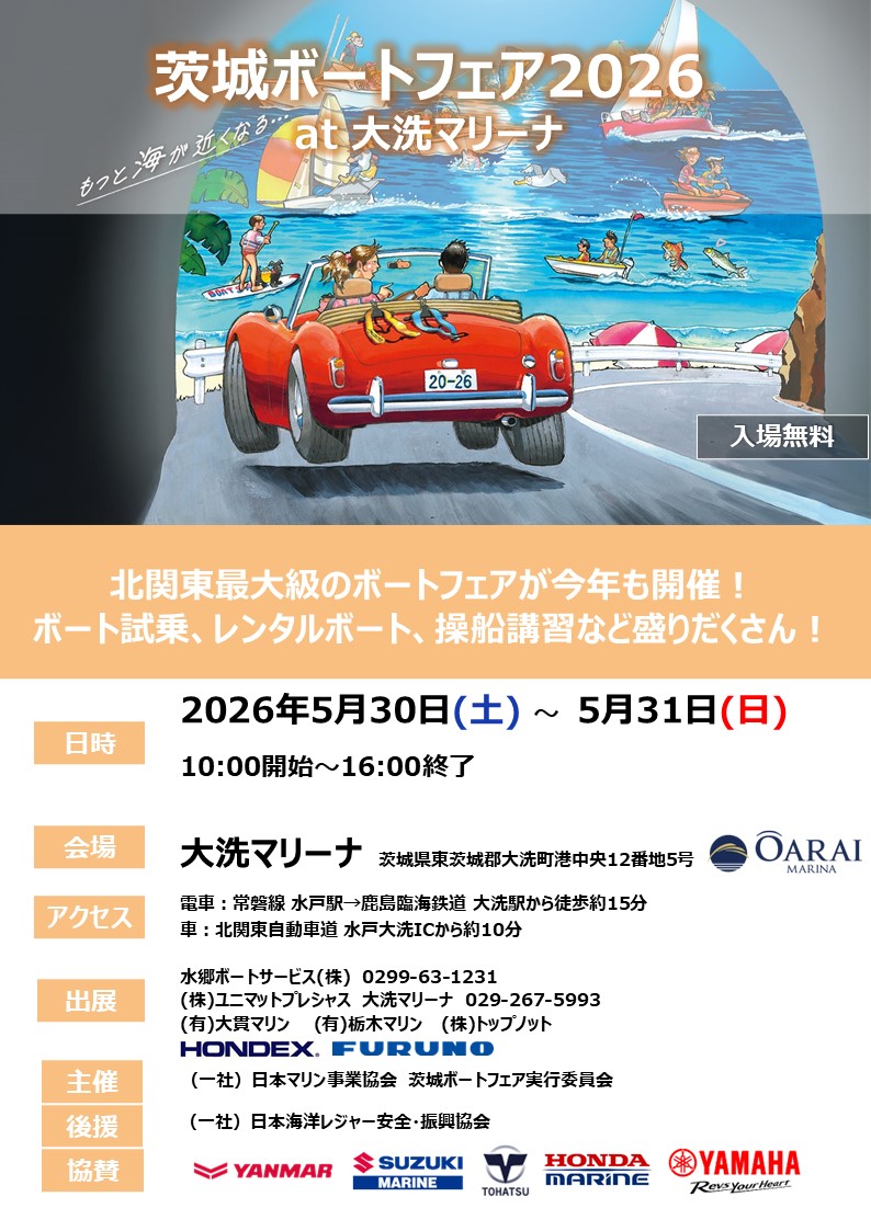 | 問合せ先 | 水郷ボートサービス株式会社 0299-63-1231 大洗マリーナ 029-267-5993 |